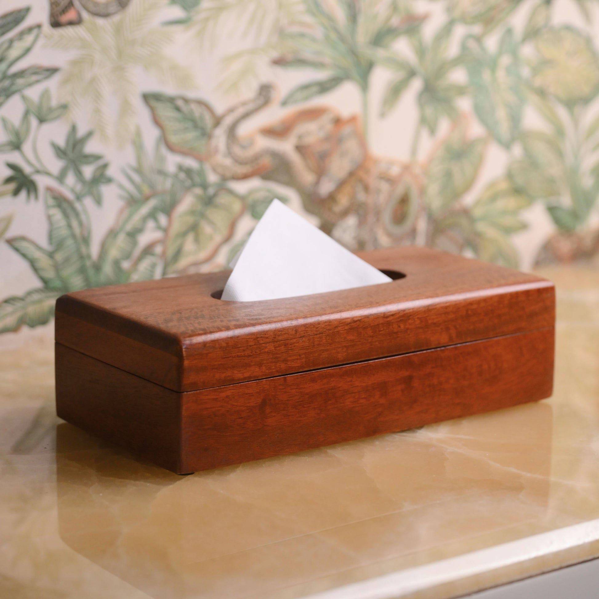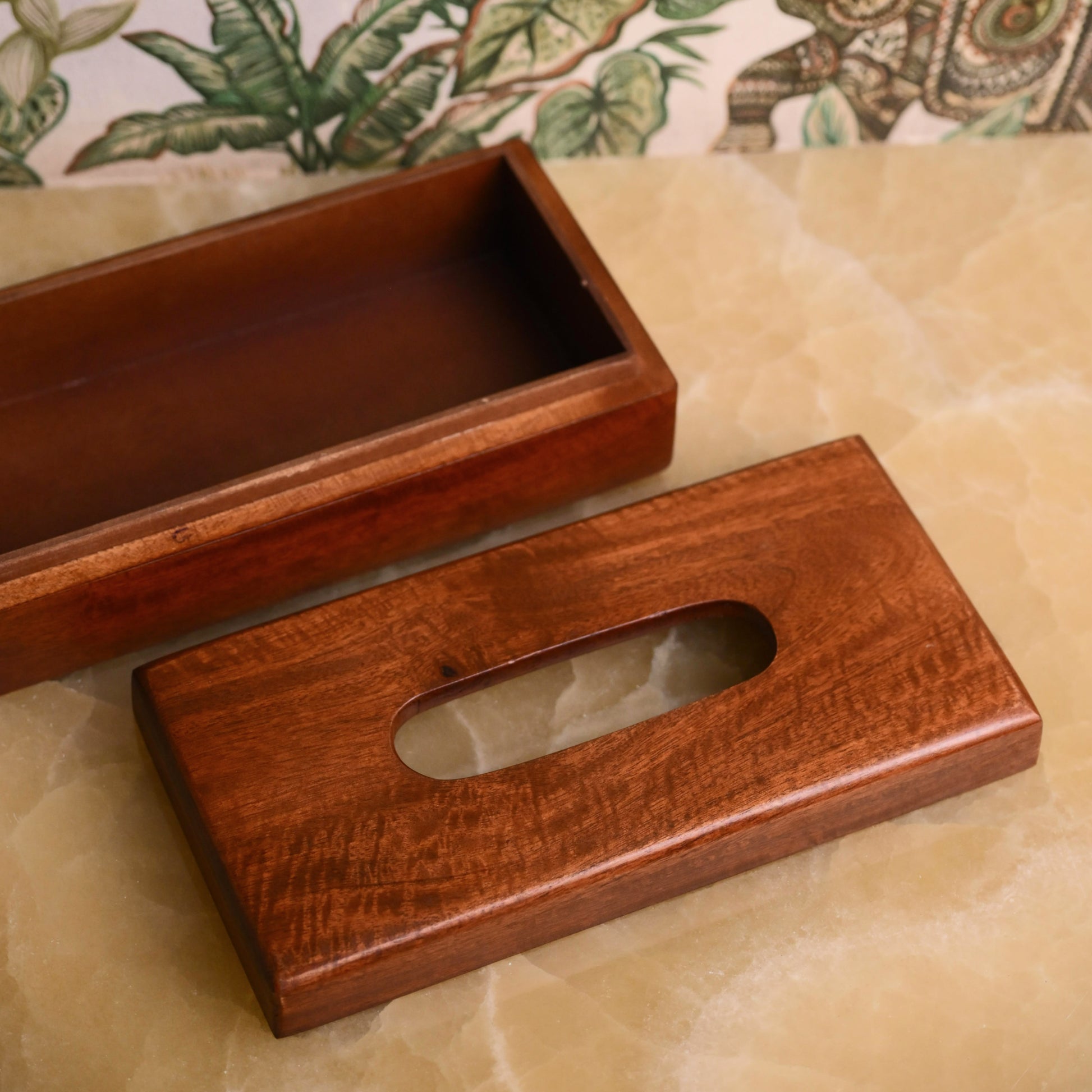 Bring freshness to your space with this wooden tissue box, featuring a soothing blue leaf enamel print and a natural wood base. Perfect for dining tables, consoles, or work desks, it blends functionality with vibrant design. A must-have tabletop accessory for modern homes and a thoughtful gifting pick.
