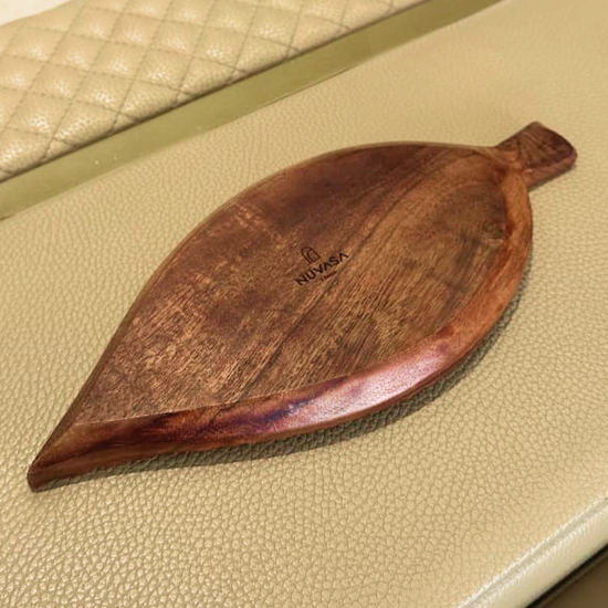 Bring nature-inspired elegance to your table with this carved wooden leaf platter. Expertly crafted from high-quality wood, its intricate design mimics a delicate leaf, making it perfect for serving tea sets, snacks, or decorative displays. Ideal for a minimalist, rustic, or boho-chic decor style.