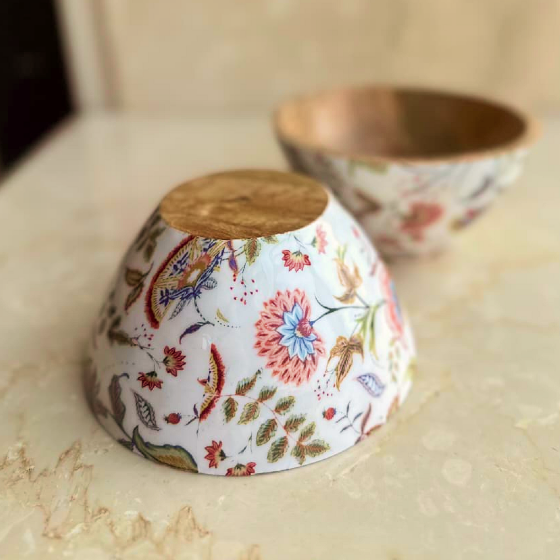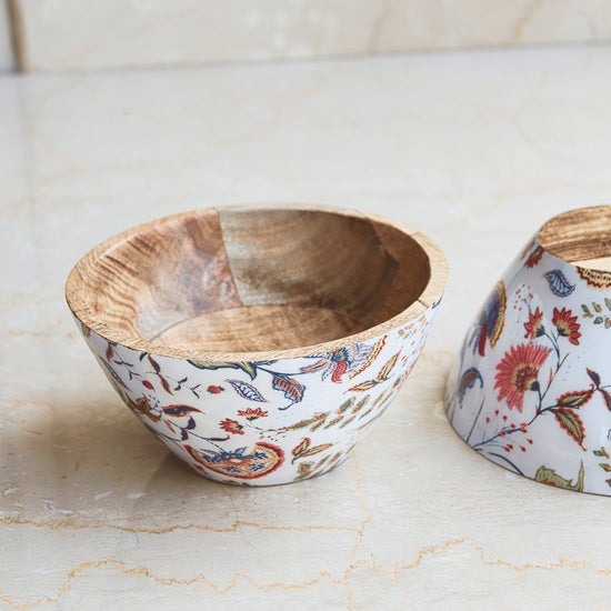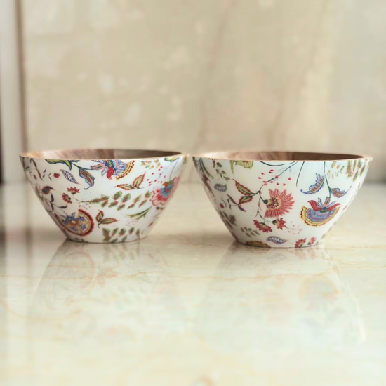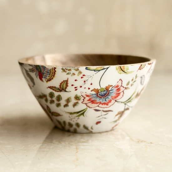 Add a touch of nature-inspired elegance to your table with the Flora Enamel & Wood Bowl. Handcrafted by skilled artisans, this piece features a warm mango wood base paired with a glossy enamel interior adorned in soft floral motifs. Perfect for serving snacks, dry fruits, or simply as a decorative accent, it blends modern craftsmanship with timeless Indian artistry. Use it as a serving bowl, festive decor piece, or gifting accent — versatile and charming for every occasion.