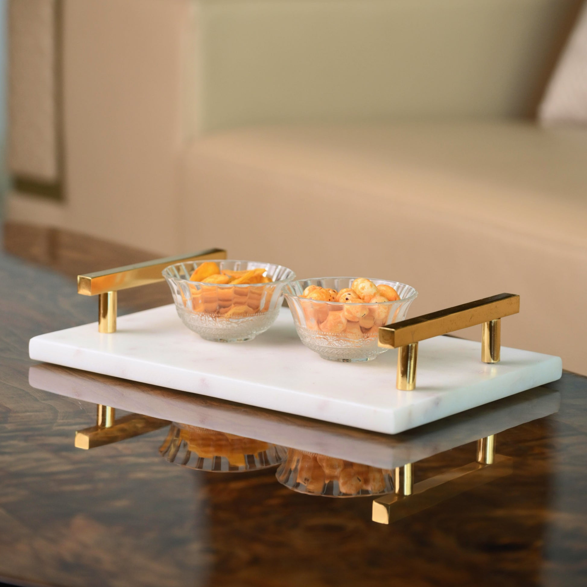 Handcrafted Marble Tray with Brass Handles