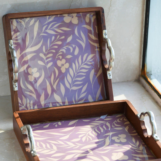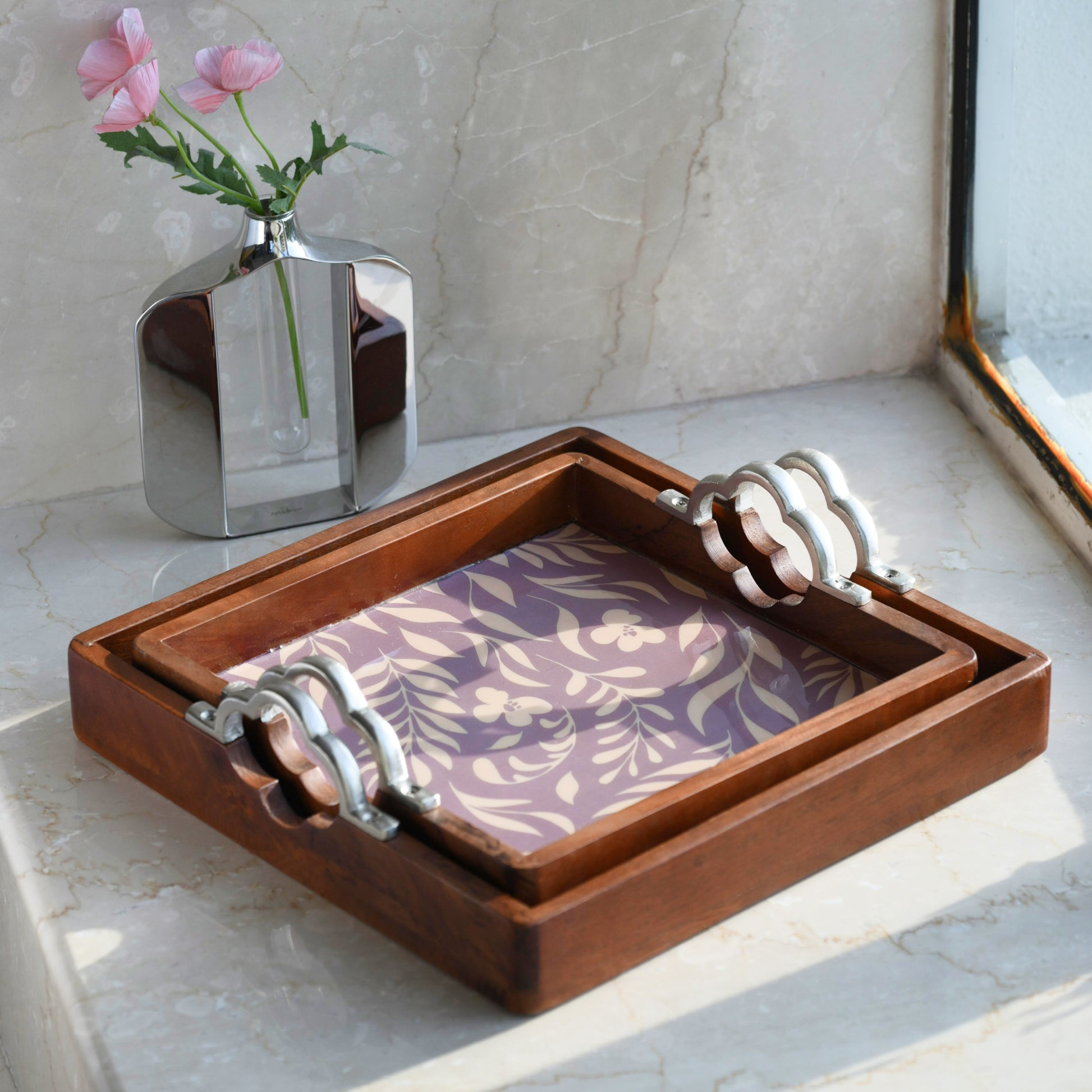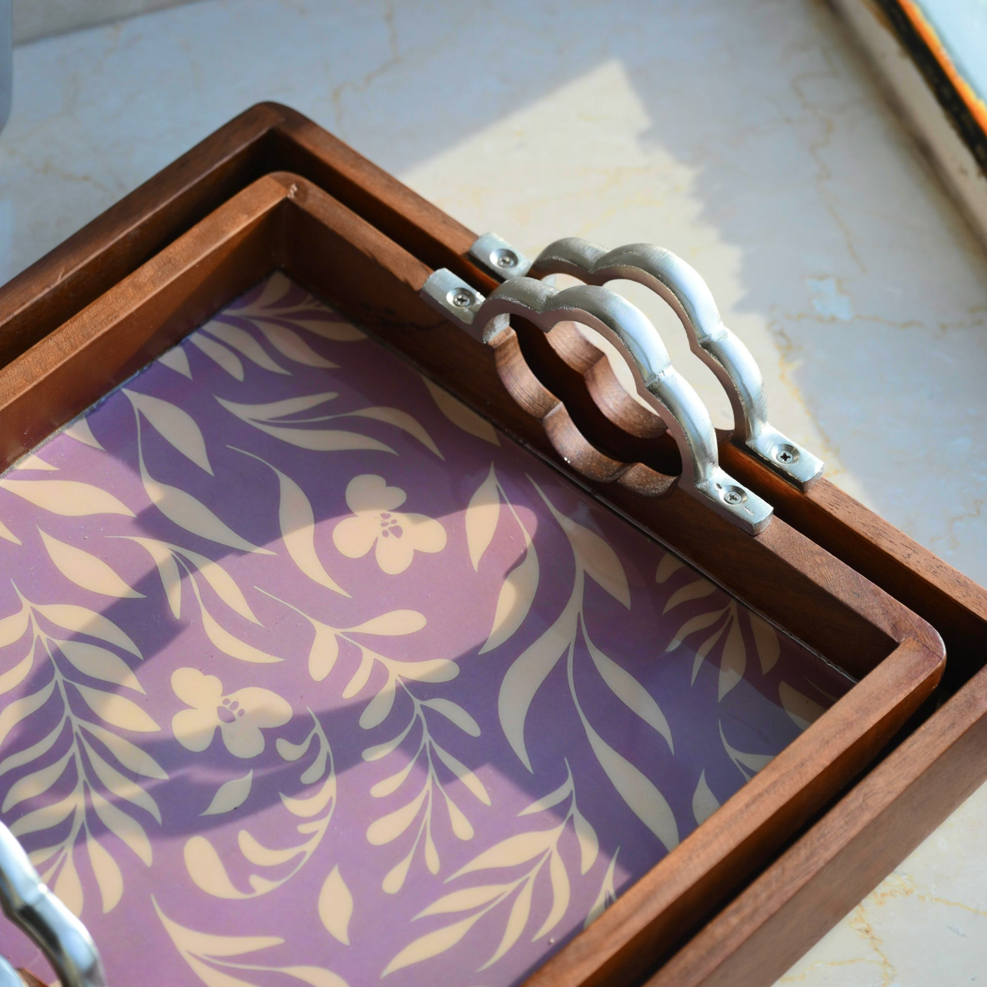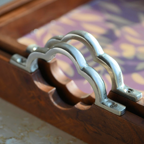 Crafted from premium wood, this wooden serving tray features elegant brass-finished handles for a touch of sophistication. Perfect for serving tea, snacks, or cocktails, it blends beautifully with modern and classic home aesthetics. The rich natural wood grain adds warmth to your tableware collection. Ideal for entertaining guests, breakfast in bed, or gifting.