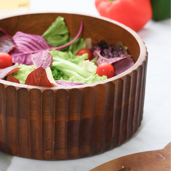 Round Ribbed Wooden Bowl